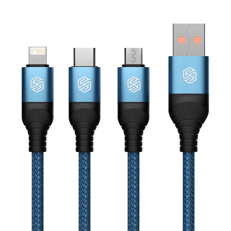 Puhelintarvikkeet Liitäntäkaapelit NILLKIN SWIFT PRO 3-in-1 USB-A to L/M/C sininen